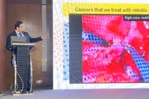 Dr. P. Mahadev, Senior Consultant Radiation Oncologist, Apollo Cancer Institute, Chennai, spoke about the most advanced Cyber Knife Robotic Radio Surgery and Southeast Asia's only proton beam therapy, and Dr. Ajith Pai, Senior Consultant Surgical Oncologist and Robotic Surgeon, spoke about advancements in robotics in oncology and HIPEC.